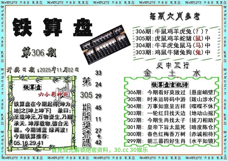 305期精解铁算盘玄机时来运转码中游{跋山涉水}